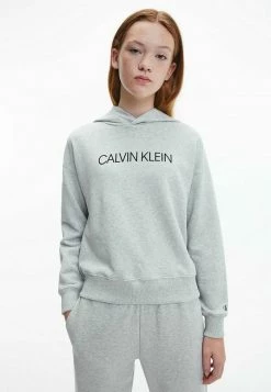 Calvin Klein Jeans CUT OFF TWO TONE MONOGRAM HOODIE UNISEX – Sweat à Capuche – Light Grey Heather